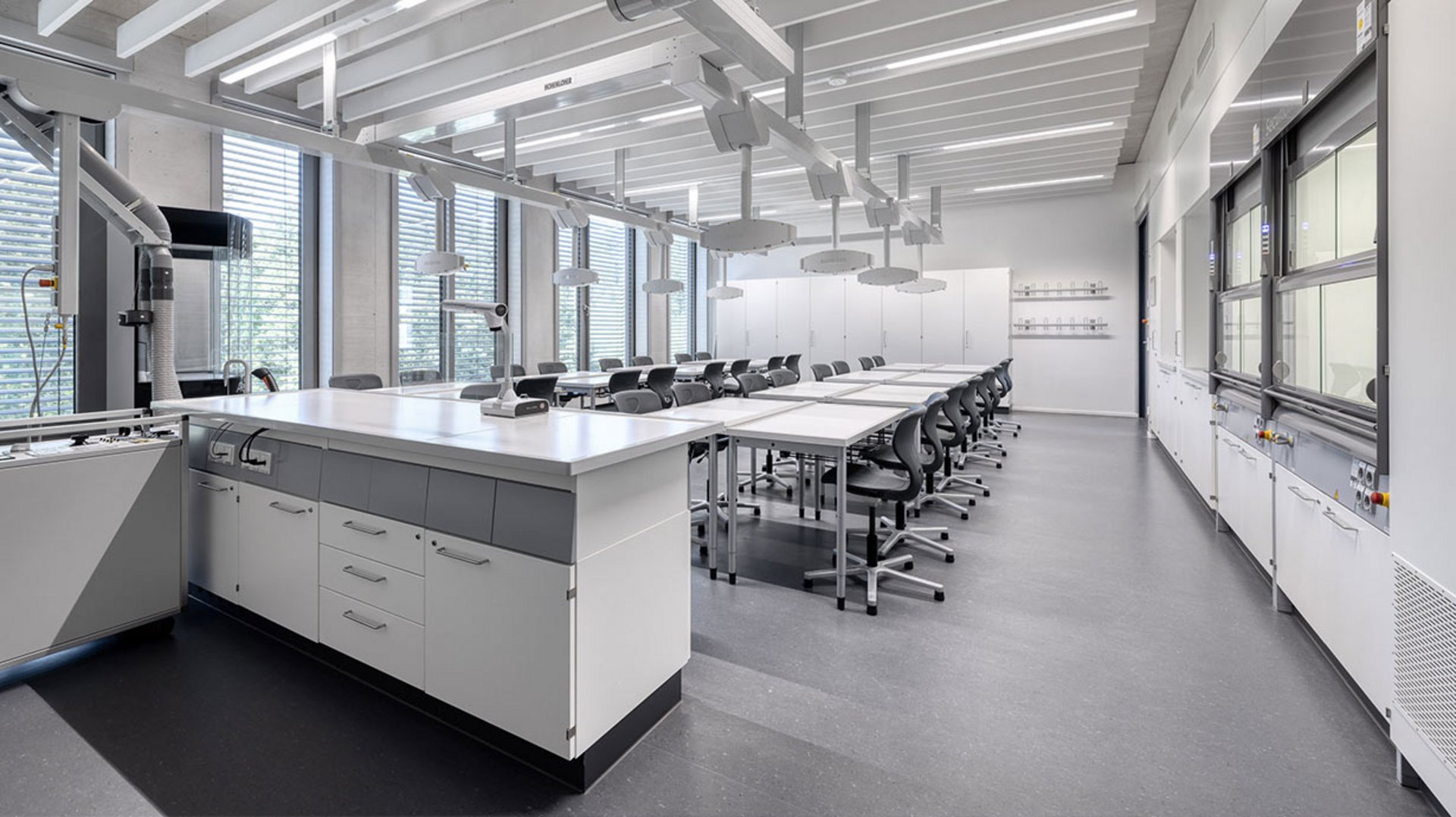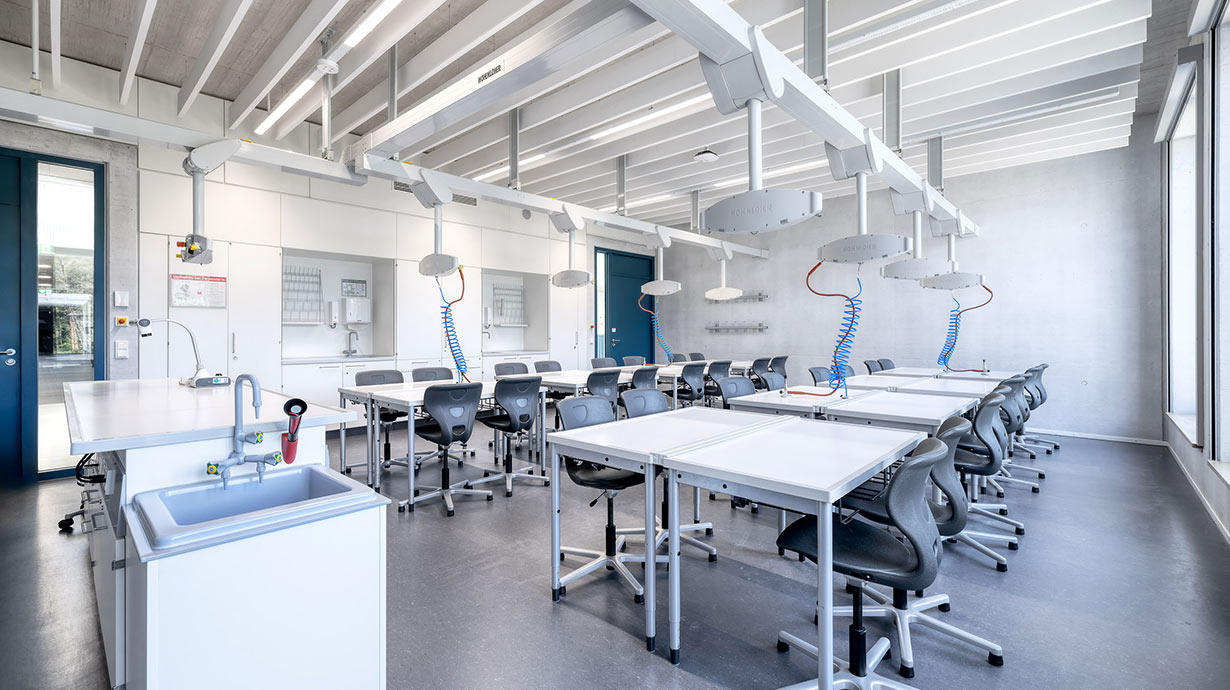 Die Bertolt-Brecht-Schule in Nürnberg ist ein kooperatives Schulzentrum für 1800 Schülerinnen und Schüler, in dem ein städtisches Gymnasium, eine städtische Realschule und eine staatliche Mittelschule unter einem Dach zusammenarbeiten. In dem klimaneutralen Gebäude hat Hohenloher alle naturwissenschaftlichen Unterrichtsräume eingerichtet.